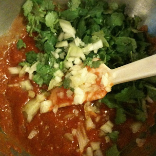 So the other day I made tostadas and only at the end did I realize that there was basically no salsa in the house. The Other Adult hates it when I commit the sin of going to the grocery store during or before a meal for some necessary ingredient. She likes the house to be fully stocked at all times and any indication that we don't have a full grocery store on hand at all times basically pushes her over the edge. She also says I take too long to go to the grocery store.